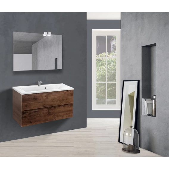Тумба с раковиной темное дерево 90 см Vincea Mia VMC-2MA900RW + VCB-3M900W