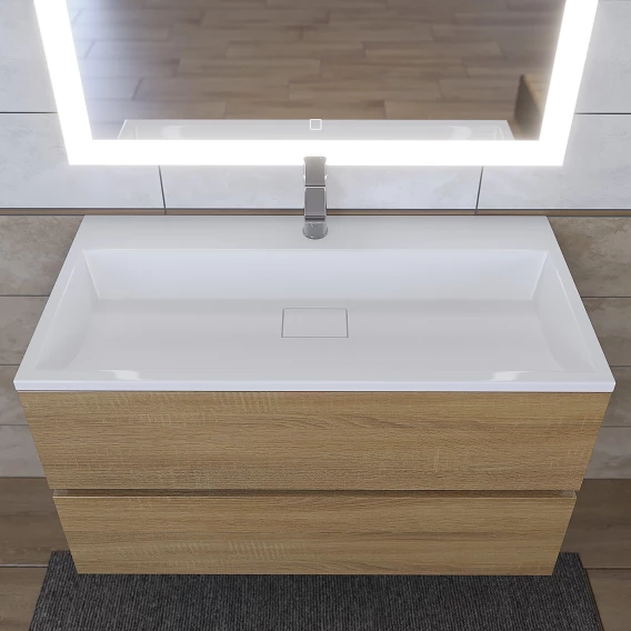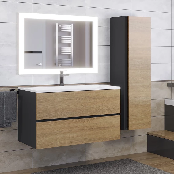 Тумба с раковиной Uperwood Barsa 29830205649 90 см, подвесная, черный матовый/дуб сонома