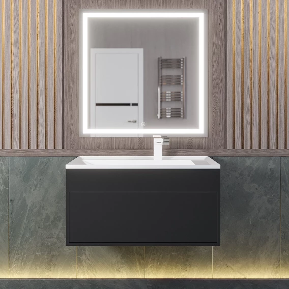 Тумба с раковиной Uperwood Lotus Premium 39340207461 80 см, подвесная, черный матовый