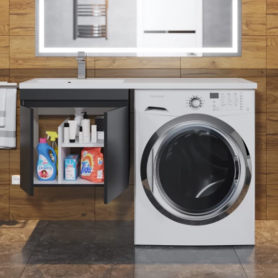 Тумба с раковиной Uperwood Magenta 51930205152 120 см L, подвесная, над стиральной машиной, черный матовый