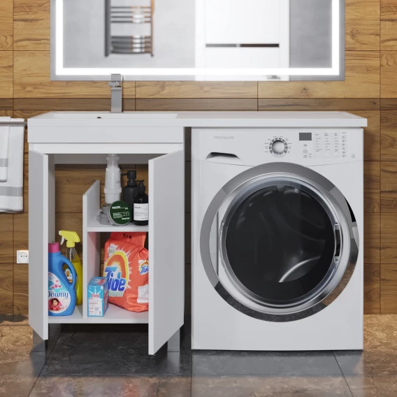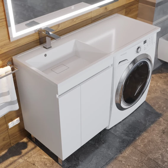 Тумба с раковиной Uperwood Magenta 51930205156 120 см L, напольная, над стиральной машиной, белый матовый