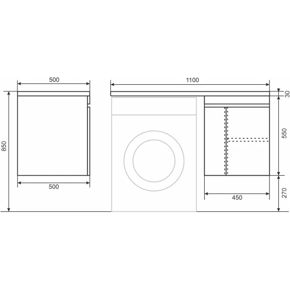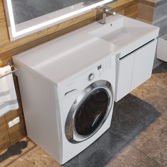 Тумба с раковиной Uperwood Magenta 52490000010 120 см R, подвесная, над стиральной машиной, белый матовый/графит матовый