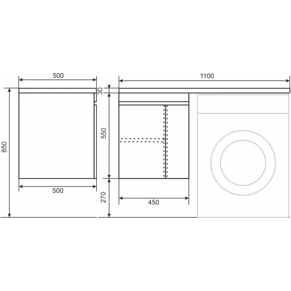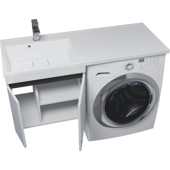 Тумба с раковиной Uperwood Magenta 52490000013 120 см L, подвесная, над стиральной машиной, белый матовый/графит матовый