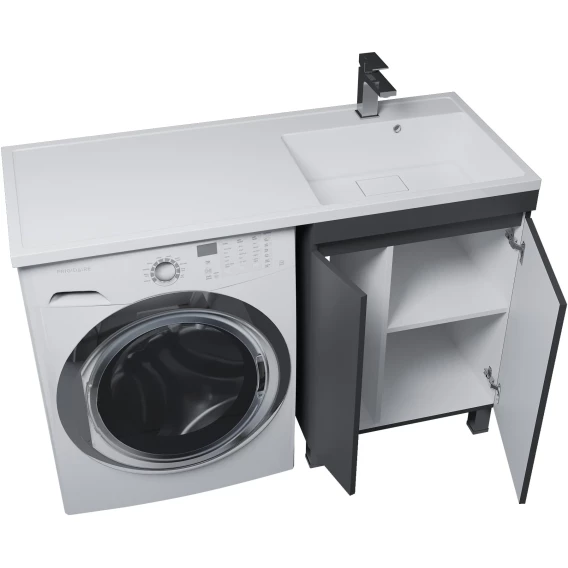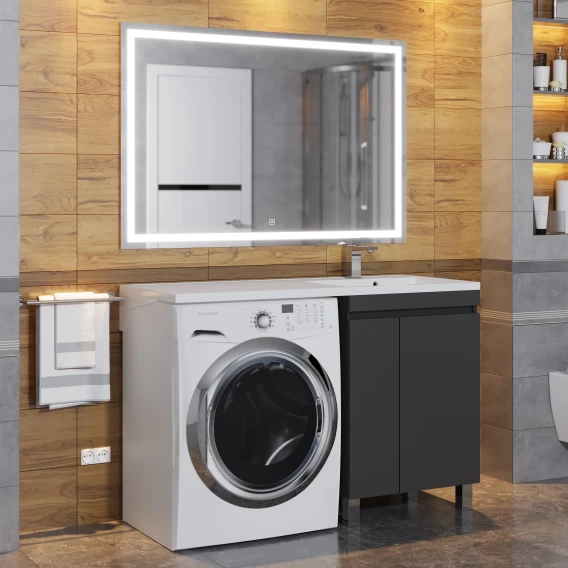 Тумба с раковиной Uperwood Magenta 52930205158 120 см R, напольная, над стиральной машиной, черный матовый
