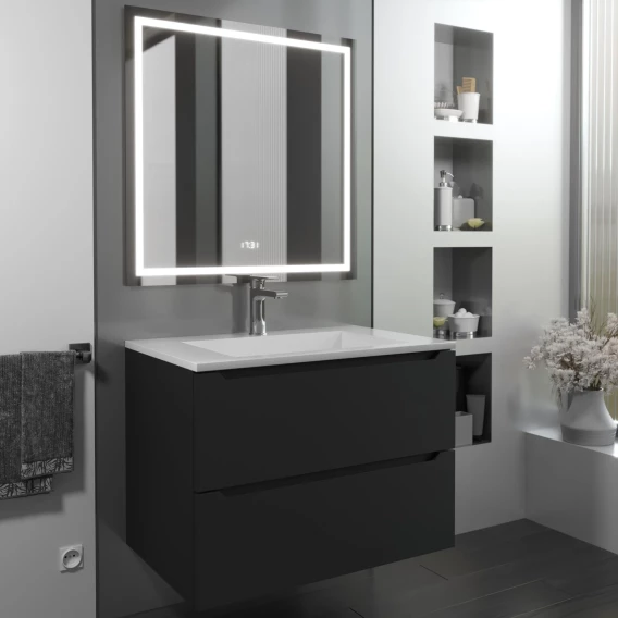Тумба с раковиной Uperwood Tanos 2900000093 70 см, подвесная, черный матовый