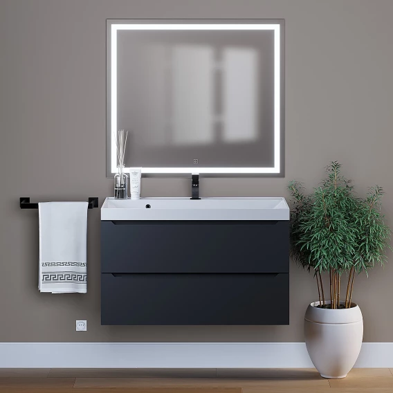 Тумба с раковиной Uperwood Tanos 291020255 90 см, подвесная, черный матовый