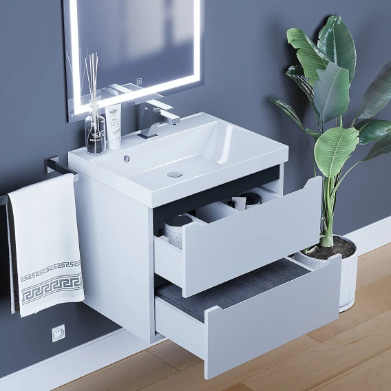 Тумба с раковиной Uperwood Tanos 2900000093 70 см, подвесная, черный матовый