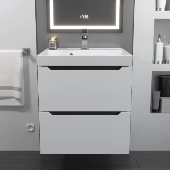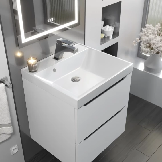 Тумба с раковиной серый камень 60 см Vincea Luka VMC-2L600GS + VCB-13600W