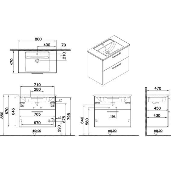 Тумба с раковиной VitrA Root Flat 66306 80 см, подвесная, белый глянец