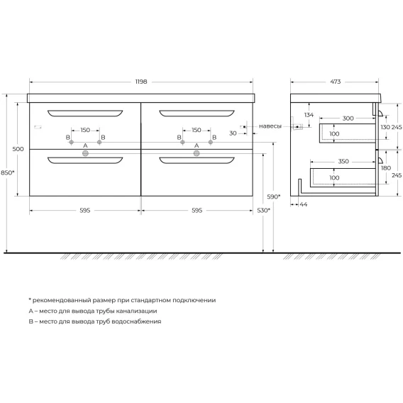 Тумба Sapfiro 119,8 см Cezares Eco ECO-1200-4C-SO-2-SPF-P