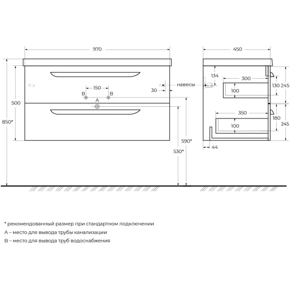 Тумба Sapfiro 97 см Cezares Eco ECO-CER-1000-2C-SO-SPF-P
