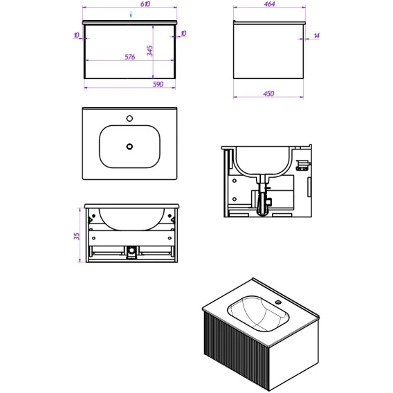 Тумба серо-зеленый матовый 59 см La Fenice Terra FNC-01-TER-G-60