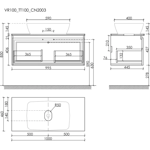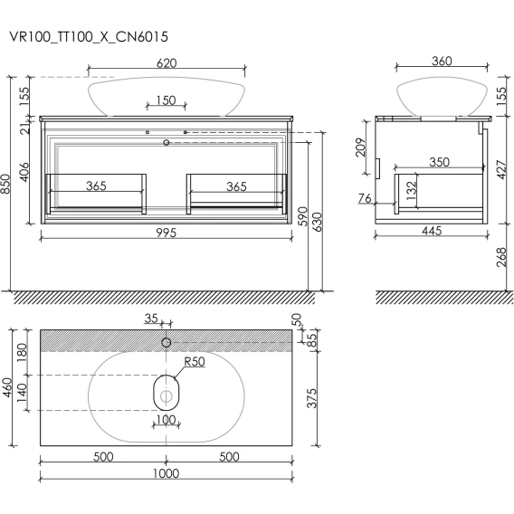 Комплект мебели серый матовый 101 см Sancos Very VR100SM + CN7013 + SF900