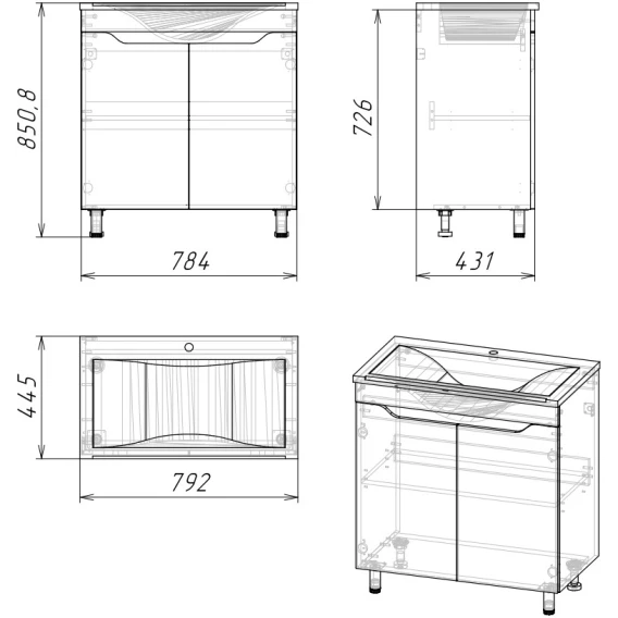 Тумба серый матовый/цемент 78,4 см Stella Polar Абигель SP-00001080