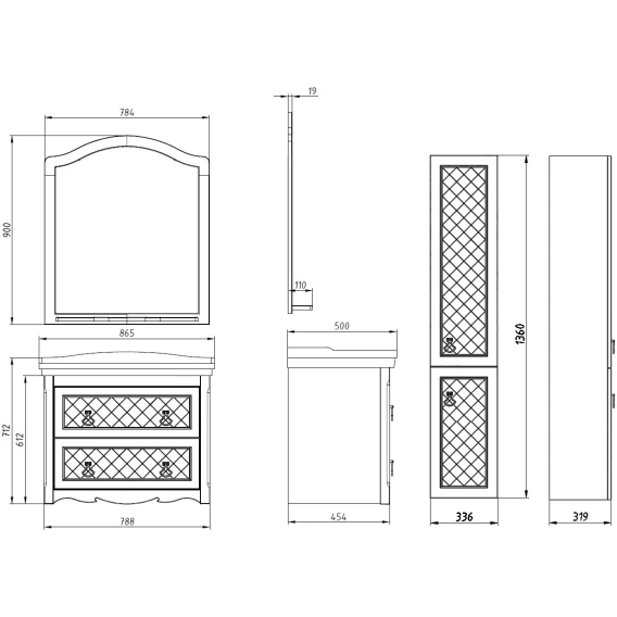 Комплект мебели слоновая кость 85,5 см ASB-Woodline Верано