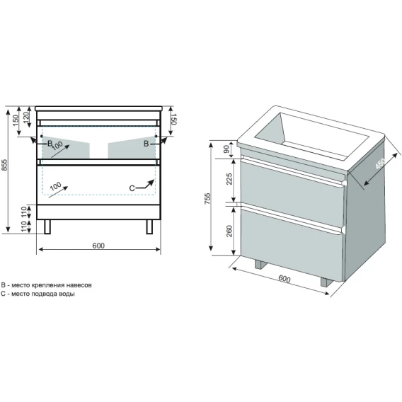 Тумба с раковиной старое дерево 60 см Style Line Атлантика СС-00002207 + СС-00002203