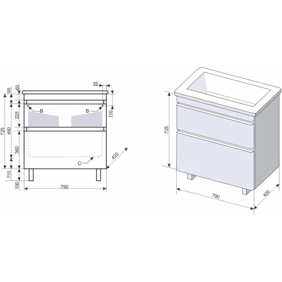 Тумба с раковиной старое дерево 80 см Style Line Атлантика ЛС-00000665 + ЛС-00000616