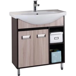 Напольная тумба Onika Гамма 75 покоряет лаконичностью, изяществом форм и практичностью.Цвет натурального дерева в 2-х оттенках с крупным фактурным рисунком внесет в интерьер ванной комнаты ощущение комфорта и тепла. Открытые полки справа обеспечат быстрый доступ к часто используемым аксессуарам, а пространство за распашными дверцами с системой плавного закрывания и врезными хромированными ручками слева станет удобным местом для хранения различных бытовых принадлежностей.Тумба выполнена из ЛДСП, устойчивой к механическим воздействиям, перепадам температур и высокой влажности.2 декоративных и 2 пластиковых ножки с регулировкой по высоте идут в комплекте с тумбой.