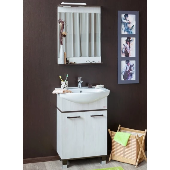 Тумба с раковиной венге/северное дерево светлое 60 см Sanflor Толедо H0000001276 + 4620008196114