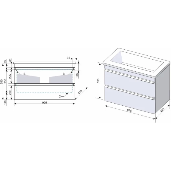 Тумба с раковиной ясень перламутр 100 см Style Line Атлантика ЛС-00000686 + ЛС-00000617