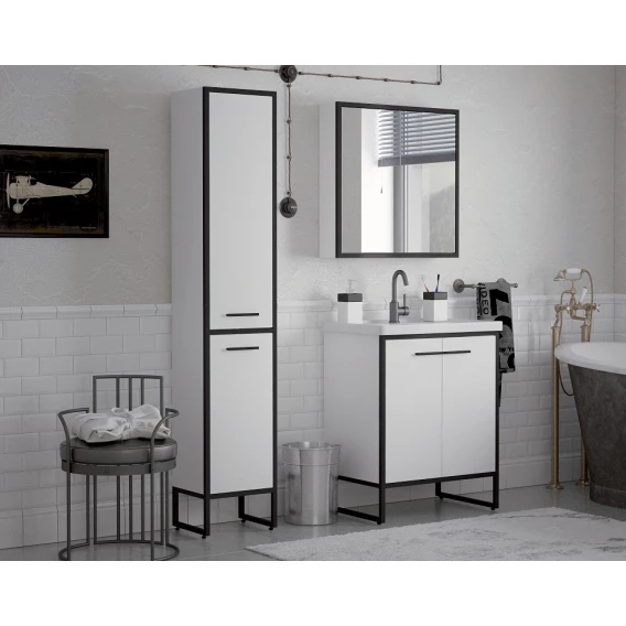 Тумба с раковиной белый глянец/черный 61 см Corozo Айрон SETSD-00000399/SD-00000380