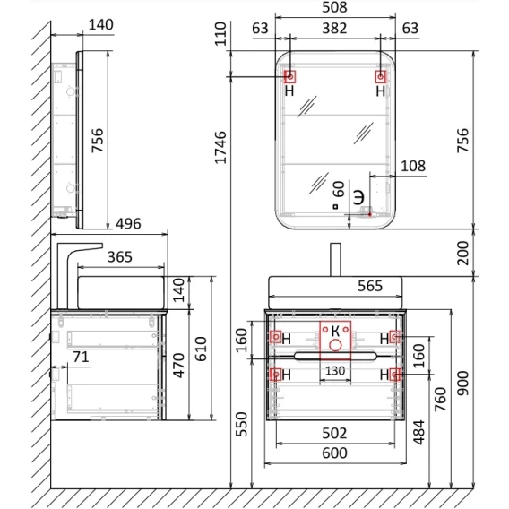Комплект мебели белый 60 см Jorno Bosko Bos.01.60/P/W + Y18293 + Bos.03.50/W