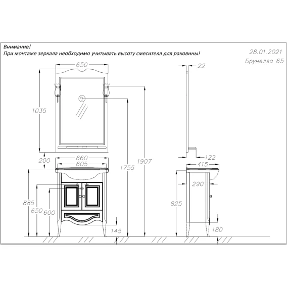 Комплект мебели белый матовый 66 см Opadiris Брунелла