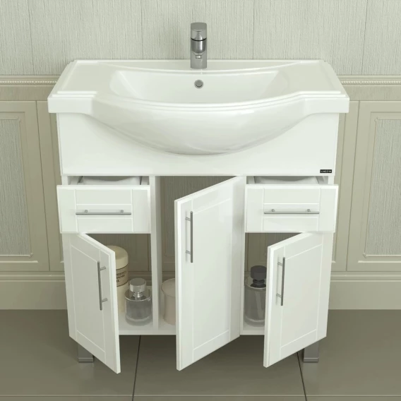 Тумба с раковиной белый глянец 81 см Санта Дублин 223008 + CLASSIC80