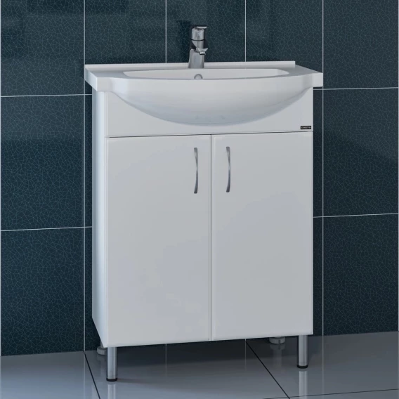 Тумба с раковиной белый глянец 65,5 см Санта Элеганс 201102 + ELEGAHC65