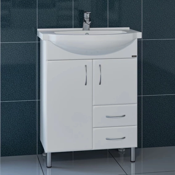 Тумба с раковиной белый глянец 65,5 см Санта Элеганс 201103 + ELEGAHC65