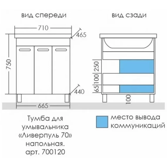 Комплект мебели белый глянец 71 см Санта Ливерпуль 700120 + FOCTEP70 + 113008