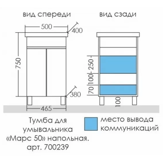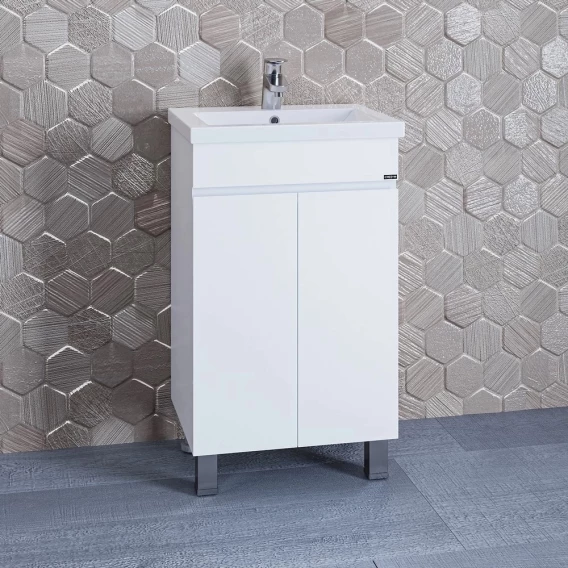 Тумба с раковиной белый глянец 46,5 см Санта Марс 700239 + FOCTEP50