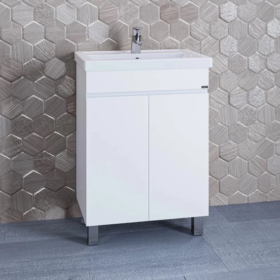 Тумба с раковиной белый глянец 61 см Санта Марс 700240 + FOCTEP60