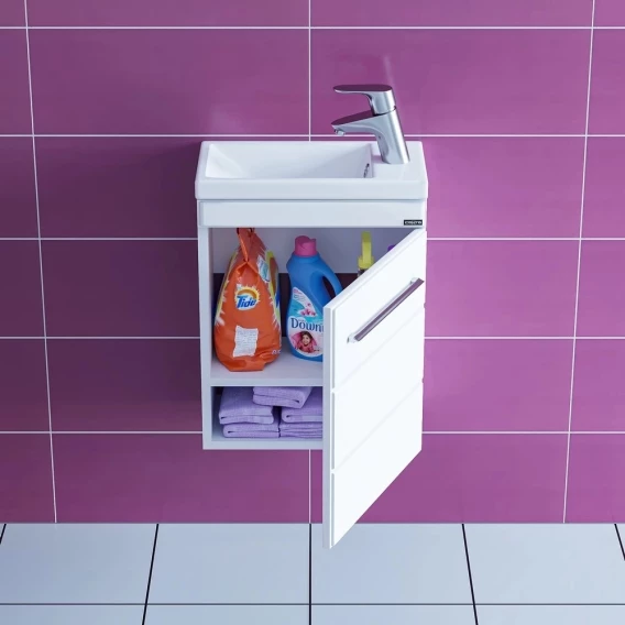 Тумба с раковиной белый глянец 40 см Санта Омега 207036 + COMO40