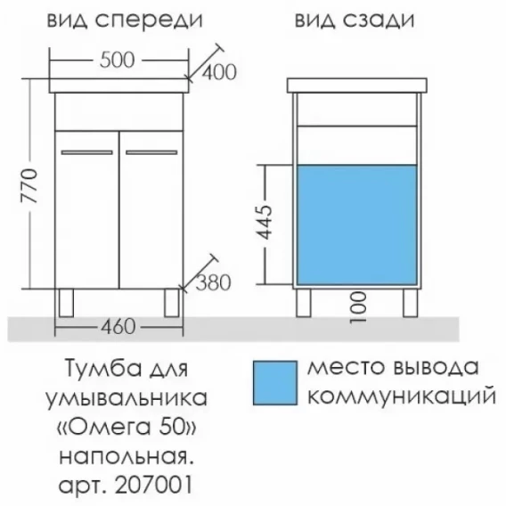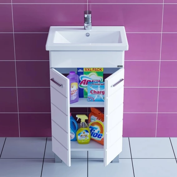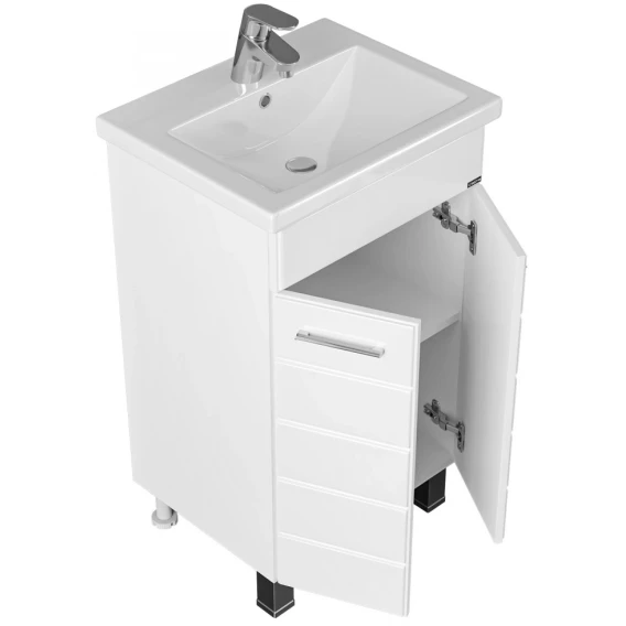 Тумба с раковиной белый глянец 46 см Санта Омега 207001 + FOCTEP50