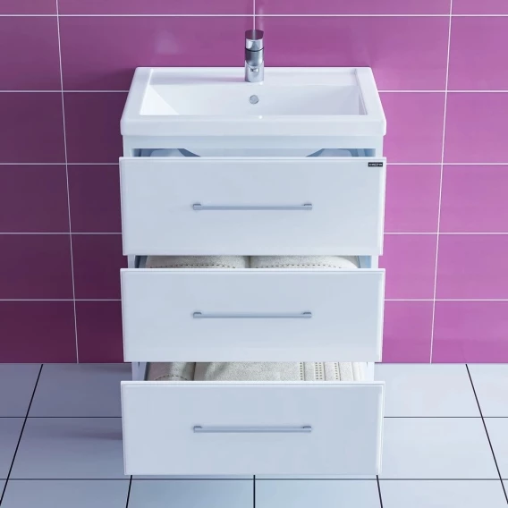 Тумба с раковиной белый глянец 60,5 см Санта Омега 207046 + FOCTEP60