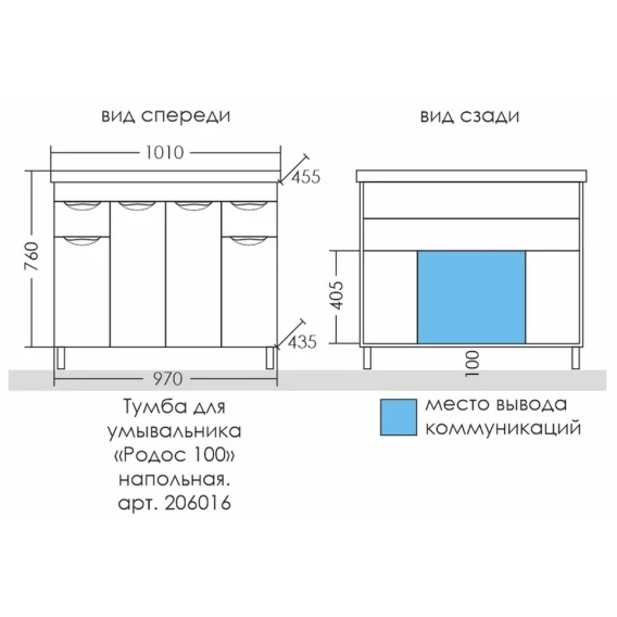 Тумба с раковиной белый глянец 101 см Санта Родос 206016 + FOCTEP100