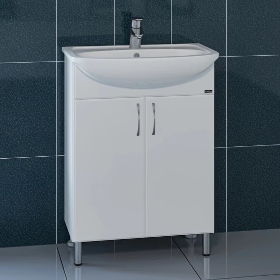 Тумба с раковиной белый глянец 61,5 см Санта Сити 201075 + YYUT60