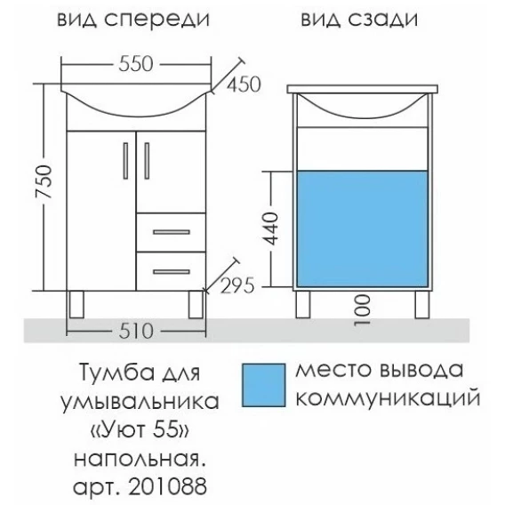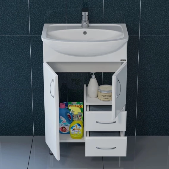 Тумба с раковиной белый глянец 55 см Санта Уют 201088 + YYUT55