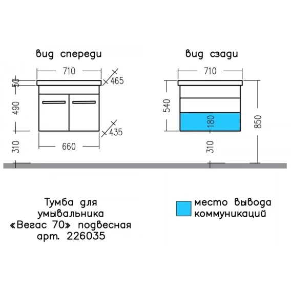 Комплект мебели белый глянец 71 см Санта Вегас 226035 + FOCTEP70 + 700179