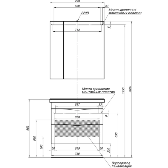 Зеркальный шкаф 59,6x85 см дуб антик Aquanet Эвора 00182996