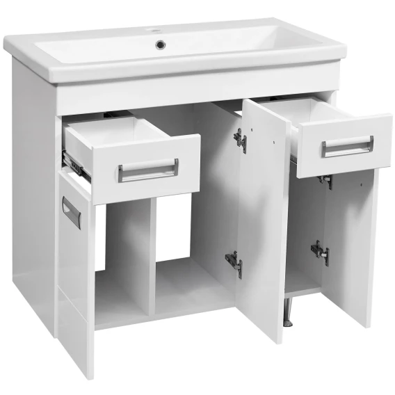 Тумба с раковиной белый глянец/белый матовый 80 см Stella Polar Фиора SETSP-00000213/UM-COM80/1