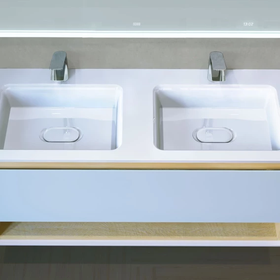 Тумба с раковиной белый/дуб 122 см Jorno Glass Gla.01.122/P/W + Mol.08.120/W