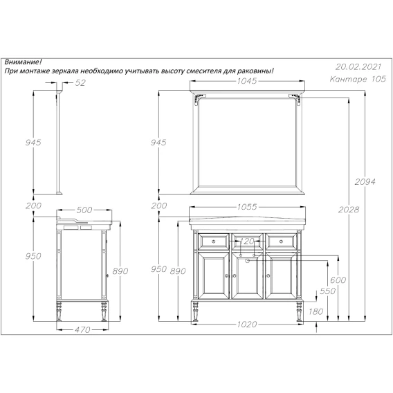 Тумба Кантара 105, цвет 9003 (раковина Модерн 105)