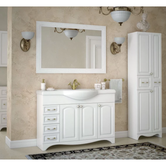 Тумба с раковиной белый глянец 121 см с бельевой корзиной Corozo Классика SETSD-00000370/SD-00000375