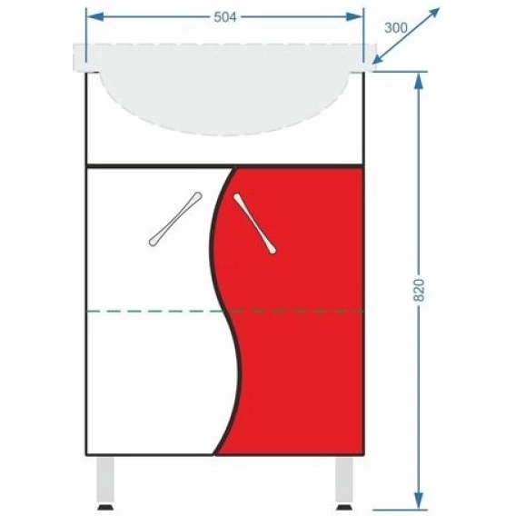 Тумба с раковиной белый глянец/красный глянец 55,5 см Stella Polar Колор-1 SETSP-00000194/SD-00000065