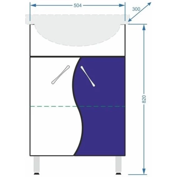 Тумба с раковиной белый глянец/синий глянец 55,5см Stella Polar Колор-1 SETSP-00000195/SD-00000065