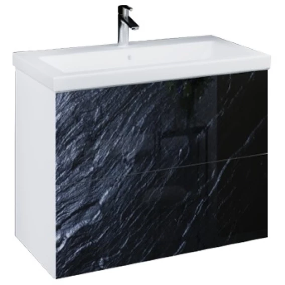 Тумба черный дикий камень/белый глянец 78,8 см Marka One Lacio У72819