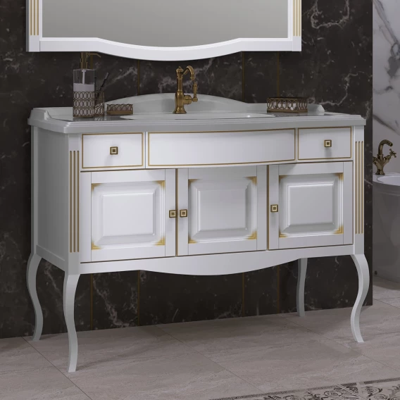 Тумба с раковиной белый золотая патина 120 см Opadiris Лаура