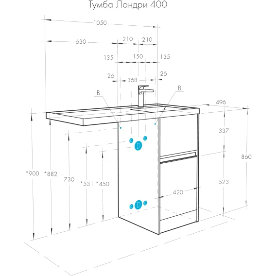 Раковина над стиральной машиной 105x50 см Акватон Лондри 1A72833KLH01L